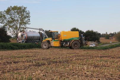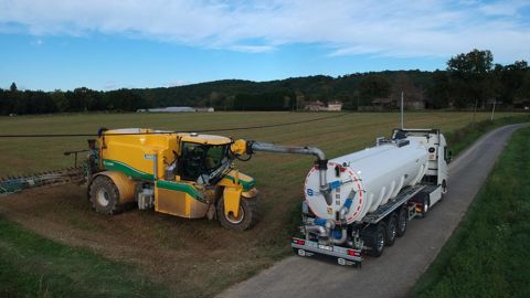 « J’ai réalisé mes premières prestations d’épandage en 2014 avec un tracteur et une tonne à lisier, raconte Julien Poque, entrepreneur de travaux agricoles à Montastruc, dans les Hautes-Pyrénées. Ensuite, l’ETA s’est progressivement développée en proposant de nouvelles activités comme la récolte de grains et de semences. À partir de 2021, avec la création, par une soixantaine d’agriculteurs, d’une importante unité de méthanisation à quelques kilomètres de chez moi, la demande en épandage a évolué. J’ai donc acheté une deuxième tonne, car j’épands jusqu’à 90 000 m3 de lisier et de digestat par an. Jusqu’à l’année dernière, je proposais une organisation classique, avec du matériel faisant des allers-retours de la fosse jusqu’au champ. Mais ce schéma ne me convenait pas pour plusieurs raisons. Tout d’abord, le tracteur et la tonne étaient trop lourds sur la route comme dans les champs. Ensuite, lors des trajets, cela ramenait parfois beaucoup de terre sur la chaussée, ce qui donnait une image négative de l’entreprise. J’ai donc réfléchi à des pratiques alternatives, pour finalement investir dans un automoteur d’épandage qui reste toujours dans les champs et fonctionne grâce à un ravitaillement par camions-citernes. »