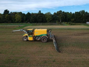 Avant de s’engager avec un nouveau client, Julien Poque va visiter les parcelles afin de repérer les accès routiers et enregistrer les points GPS où se passera le ravitaillement. Ces données sont transmises aux chauffeurs qui, ainsi, ne perdent pas de temps pour se retrouver lorsque le chantier démarre. Dans le champ, l’entrepreneur propose soit de travailler avec une rampe Bomech à patins de 15 m de largeur, soit d’opter pour des disques déchaumeurs et enfouisseurs de 6 m de largeur. La conduite de l’automoteur ne pose pas de difficulté. « Le chauffeur apprécie la simplicité des commandes puisqu’il pilote tout l’appareil avec la poignée intégrée à l’accoudoir, explique Julien Poque. L’épandeur dispose d’un guidage Trimble pour baliser les lignes de passage. Cette nouvelle organisation me semble bien optimisée aujourd’hui. Auparavant, les deux ensembles tracteurs et tonnes à lisier faisaient énormément d’heures, avec beaucoup de temps sur la route, ce qui usait les pneus et la mécanique. Il fallait même travailler la nuit pour profiter au maximum des fenêtres météo favorables. Une stratégie peu appréciée des riverains et difficile aussi à faire accepter aux salariés. Désormais, les temps de route quotidiens des chauffeurs sont régis par le chronotachygraphe des camions. Nous n’épandons jamais le dimanche et assez rarement le samedi. Moi qui suis toujours à la recherche de salariés pour mes différents chantiers, j’estime qu’il est important de leur proposer des horaires raisonnables pour les fidéliser. »