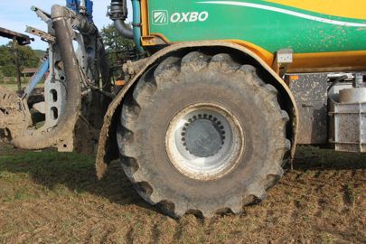 Pour l’automoteur, Julien Poque choisit un modèle AT4103 à trois roues d’Oxbo, un constructeur qu’il connaît bien puisqu’il possède déjà deux corn-pickers de la même marque. Cet épandeur doté d’une cuve de 16 m3 embarque un moteur de 400 ch. « Je suis allé en voir fonctionner dans des fermes en Hollande, ajoute l’entrepreneur. Je voulais un modèle simple et adapté à notre petit parcellaire. Les pneus de 1 250 mm sont gonflés à 1,4 bar, le minimum requis par l’indice de charge. Je n’ai pas choisi l’option télégonflage puisque l’engin ne va jamais sur la route quand la cuve est pleine. Le bras de pompage a été allongé afin de passer au-dessus d’un fossé, si le camion stationne sur le bas-côté de la route. Comme les camions standards ont une capacité de 31 m3, la cuve de 16 m3 est intéressante, car cela correspond à deux remplissages. Je n’avais aucun intérêt à choisir un épandeur plus volumineux. »