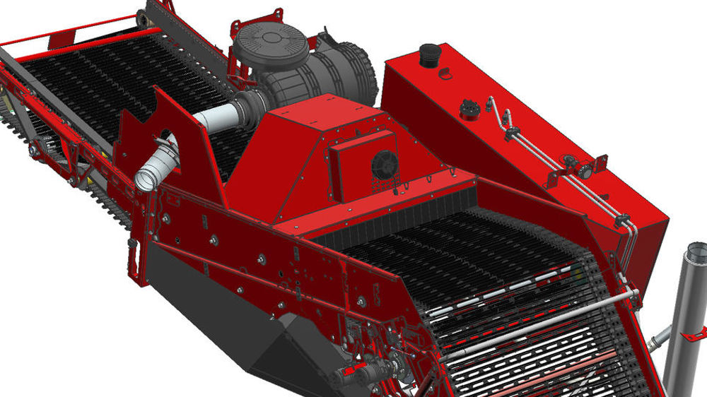 Le spécialiste de la récolte de pommes de terre et de betteraves Grimme dévoile sa solution dénommée « CropAnalyser ». La structure de ce système d’analyse de la récolte, placé au-dessus de la bande de remplissage de la trémie, se compose de caméras et de lasers qui étudient le flux de matière.