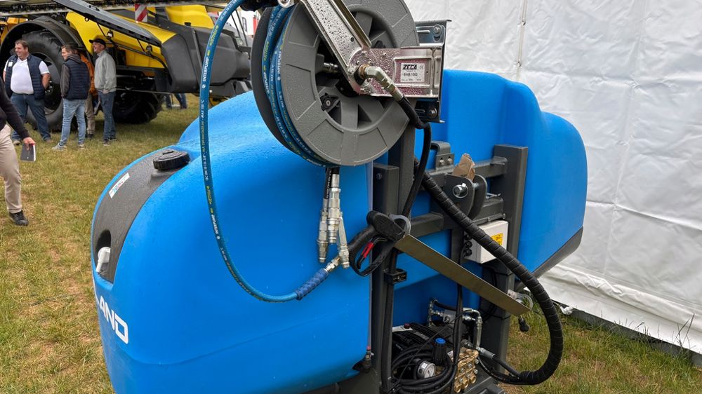 Proposant déjà une offre très complète de cuves frontales dédiées à la pulvérisation et à la fertilisation, ainsi qu’une déclinaison de couleur rouge spécialisée dans la lutte contre les incendies, Arland étoffe encore son catalogue avec une gamme conçue pour les travaux de lavage. De couleur bleue, celle-ci se décline en trois capacités de 1 100, 1 500 et 1 900 L. Attelée à un tracteur ou à un chariot télescopique, elle reçoit une pompe à haute pression entraînée hydrauliquement. Celle-ci délivre un débit de 30 L/min à 200 bar, et alimente une lance associée à un enrouleur de 18 m.