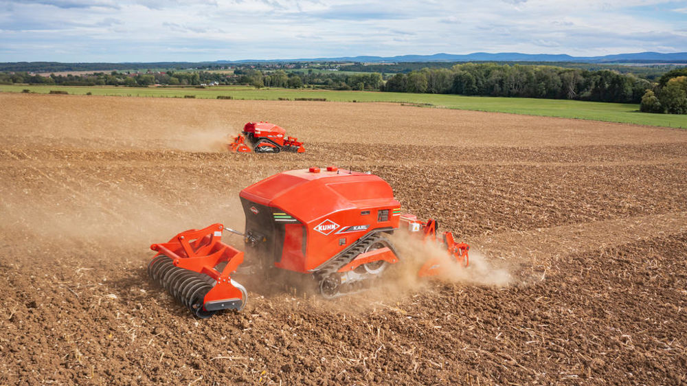 Sur le salon Agritechnica 2023, Kuhn a dévoilé un concept de tracteur autonome baptisé « Karl ». Ce dernier se chausse de chenilles animées par des moteurs électriques, eux-mêmes alimentés, via une génératrice, par un bloc thermique d’une puissance de 175 ch. Le Karl est pour le moment couplé à une herse rotative électrique de 2,5 m, appelée « HR 2520 e ». Deux prototypes tournent déjà dans des parcelles autour de Saverne, en Alsace.